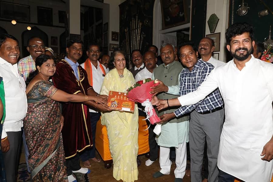 ಅರಮನೆಯ ಖಾಸಗಿ ನಿವಾಸದಲ್ಲಿ ಭೇಟಿಯಾಗಿ ಶನಿವಾರ ಸಾಂಪ್ರದಾಯಿಕವಾಗಿ ಆಮಂತ್ರಿಸಿದರು. ಸಂಸದ ಪ್ರತಾಪ ಸಿಂಹ, ವಿಧಾನಪರಿಷತ್ ಸದಸ್ಯ ಸಿ.ಎನ್.ಮಂಜೇಗೌಡ, ಮೇಯರ್ ಶಿವಕುಮಾರ್, ಉಪ ಮೇಯರ್ ಡಾ.ಜಿ.ರೂಪಾ ಯೋಗೇಶ್, ಜಿಲ್ಲಾಧಿಕಾರಿ ಡಾ.ಬಗಾದಿ ಗೌತಮ್, ಕರ್ನಾಟಕ ವಸ್ತುಪ್ರದರ್ಶನ ಪ್ರಾಧಿಕಾರದ ಅಧ್ಯಕ್ಷ ಮಿರ್ಲೆ ಶ್ರೀನಿವಾಸಗೌಡ, ಅರಮನೆ ಮಂಡಳಿ ಉಪ ನಿರ್ದೇಶಕ ಟಿ.ಎಸ್.ಸುಬ್ರಹ್ಮಣ್ಯ ಇದ್ದರು.