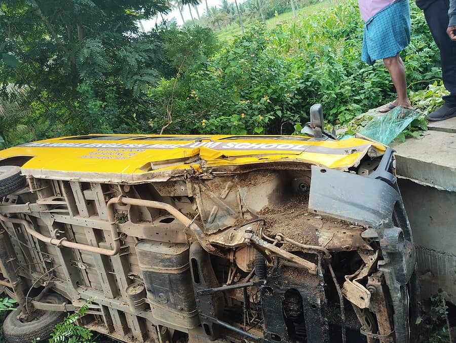 ಬುಧವಾರ ಬೆಳಿಗ್ಗೆ ಶಾಲೆಗೆ ತೆರಳುವ ವೇಳೆ, ಹೊರವಲಯದ ಬಳಿ ಚಾಲಕನ ನಿಯಂತ್ರಣ ತಪ್ಪಿ ಬಸ್ ಹಳ್ಳಕ್ಕೆ ಬಿದ್ದಿದೆ.