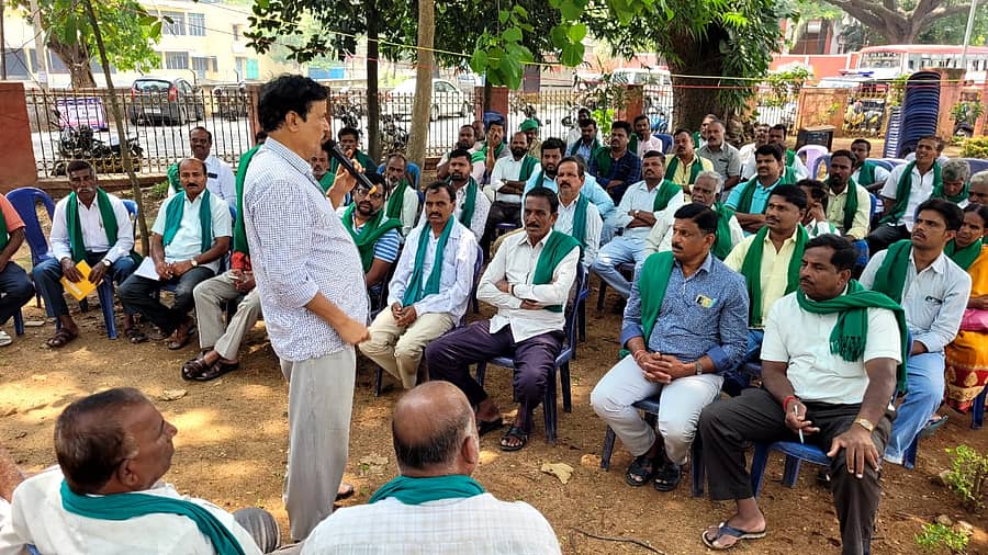ಇಲ್ಲಿನ ಕುವೆಂಪು ಉದ್ಯಾನದಲ್ಲಿ ಗುರುವಾರ ನಡೆದ ರೈತ ಮುಖಂಡರ ಸಭೆಯ ಬಳಿಕ ಮಾಧ್ಯಮ ಪ್ರತಿನಿಧಿಗಳೊಂದಿಗೆ ಅವರು ಮಾತನಾಡಿದರು.