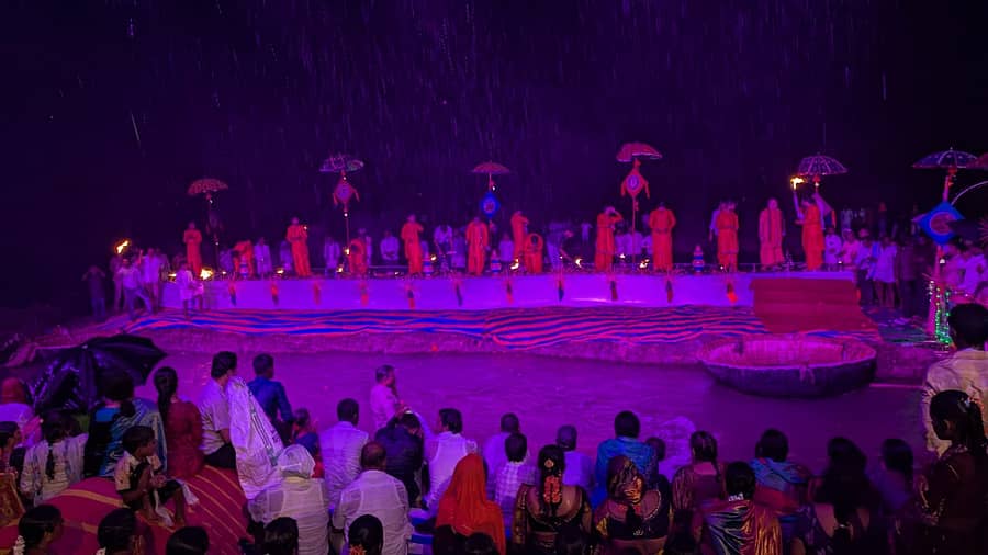 ಗೋಧೂಳಿ ಹೊತ್ತಿಗೆ, ಜಿಟಿಜಿಟಿ ಮಳೆಹನಿಗಳ ಸಿಂಚನದಲ್ಲಿ ವಾರಣಾಸಿಯ ಪ್ರಖ್ಯಾತ ಅರ್ಚಕರ ತಂಡವು ಮುಕ್ಕುಂದಾ ನದಿ ತೀರದಲ್ಲಿ ಅಂಬಾ ಆರತಿಯ ಪೂಜಾ ಕೈಂಕರ್ಯಗಳನ್ನು ಆರಂಭಿಸುತ್ತಿದ್ದಂತೆ ನೆರೆದಿದ್ದ ಜನಸ್ತೋಮದಿಂದ ಜಯಕಾರದ ಘೋಷಣೆಗಳು ಮೊಳಗಿದವು.