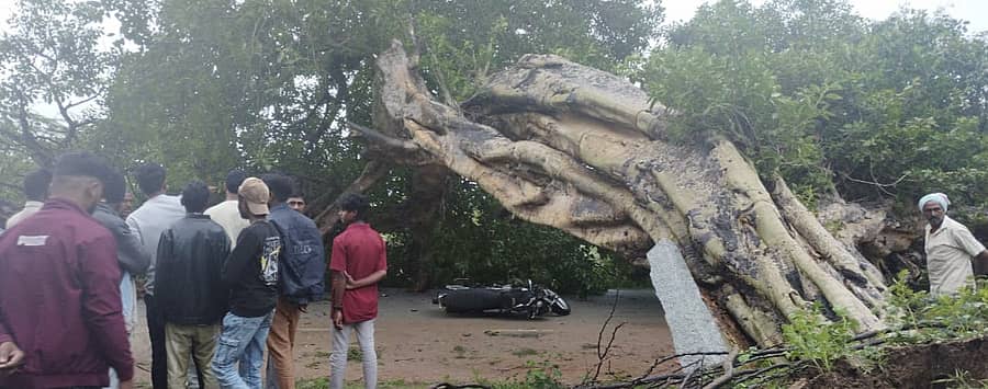 ಮುದಗಲ್ದಿಂದ ನಾಗಲಾಪುರಕ್ಕೆ ಬೈಕ್ ಮೇಲೆ ಹೊರಟಿದ್ದಾಗ ಹಳೆಯ ಆಲದ ಮರ ಬಿದ್ದು ನಾಗಲಾಪುರದ ರಮೇಶ ಗುಡದಪ್ಪ (25), ಪತ್ನಿ ಅನುಸೂಯಾ (22) ಸ್ಥಳದಲ್ಲೇ ಮೃತಪಟ್ಟಿದ್ದಾರೆ. ಇವರ ಮೂರು ವರ್ಷದ ಸೌಜನ್ಯಳಿಗೆ ಗಾಯಗಳಾಗಿವೆ.