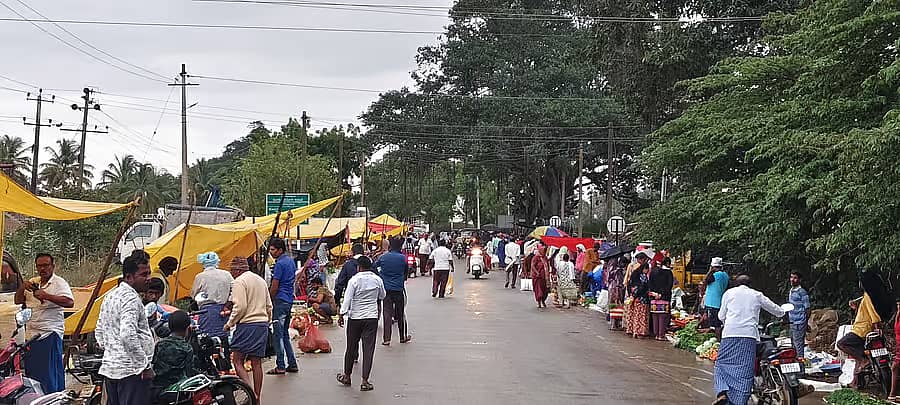 ‘ಟಿಪ್ಪರ್, ಲಾರಿ, ಬಸ್ ಸೇರಿದಂತೆ ಭಾರಿ ವಾಹನಗಳು ಸಂತೆ ಮೈದಾನದ ರಸ್ತೆಯಲ್ಲಿ ಸಂಚರಿಸುತ್ತವೆ. ಇದರಿಂದ ವಾಹನ ಚಾಲನೆ ಹಾಗೂ ಮಕ್ಕಳು, ಮಹಿಳೆಯರು ಹಾಗೂ ವೃದ್ಧರು ರಸ್ತೆಯಲ್ಲಿ ಸಂಚರಿಸುವುದಕ್ಕೆ ಹರಸಾಹಸ ಪಡಬೇಕಾಗಿದೆ. ರಸ್ತೆಯ ಅಕ್ಕಪಕ್ಕದಲ್ಲಿ ವ್ಯಾಪಾರ ಮಾಡುವವರನ್ನು ಸಂತೆ ಮೈದಾನಕ್ಕೆ ಕಳುಹಿಸಿ, ಸುಗಮ ಸಂಚಾರಕ್ಕೆ ವ್ಯವಸ್ಥೆ ಮಾಡಬೇಕು’ ಎಂದು ಸ್ಥಳೀಯರು ಆಗ್ರಹಿಸಿದ್ದಾರೆ.