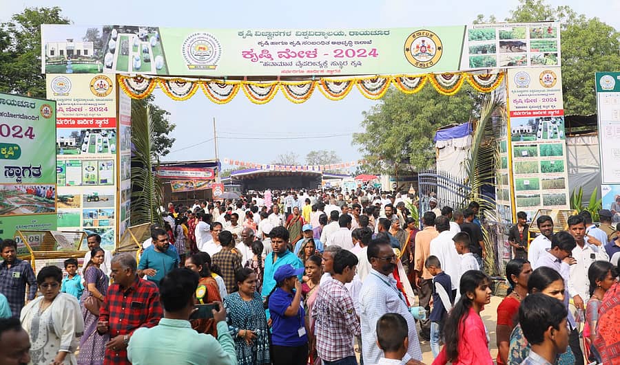 ರಾಯಚೂರು: ಕೃಷಿ ವಿಜ್ಞಾನಗಳ ವಿಶ್ವವಿದ್ಯಾಲಯದ ಮೈದಾನದಲ್ಲಿ ಆಯೋಜಿಸಿರುವ ಕೃಷಿ ಮೇಳದ ಎರಡನೇ ದಿನ ಭಾನುವಾರ ಪ್ರದರ್ಶನ ವೀಕ್ಷಣೆಗೆ ಜನ ಸಾಗರವೇ ಹರಿದು ಬಂದಿತು.