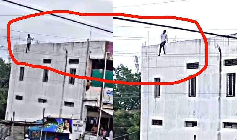 ಚಿಕಿತ್ಸೆ ಬಂದಿದ್ದ. ಆದರೆ ಆಸ್ಪತ್ರೆಯ ಎರಡು ಅಂತಸ್ತಿನ ಕಟ್ಟಡದ ಮೇಲೆ ಏರಿ ಕಟ್ಟಡದ ತುದಿಗೆ ನಿಂತು ಕೆಳಗೆ ಜಿಗಿದು ಸಾಯುವುದಾಗಿ ಜೋರಾಗಿ ಕೂಗುತ್ತಿದ್ದ. ಆಸ್ಪತ್ರೆ ಸಿಬ್ಬಂದಿ ಎಚ್ಚತ್ತೆಗೊಂಡು ಸ್ಥಳೀಯರ ನೆರವಿನಿಂದ ಯುವಕನ ರಕ್ಷಣೆ ಮಾಡಿದ್ದಾರೆ.