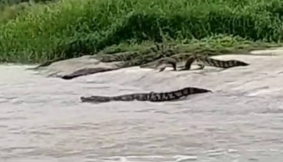 ರಾಯಚೂರು: ತಾಲ್ಲೂಕಿನ ಆತ್ಕೂರು ಗ್ರಾಮದ ಕೃಷ್ಣ ನದಿ ಪಾತ್ರದಲ್ಲಿ ಮೊಸಳೆಗಳ ದಂಡು ಕಂಡು ಬಂದಿದ್ದು ಗ್ರಾಮಸ್ಥರಲ್ಲಿ ಆತಂಕ ಮೂಡಿಸಿದೆ.