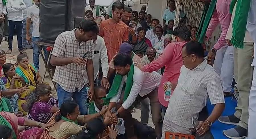 ಬಳಿಕ ಭಾಷಣ ಮುಂದುವರಿಸಿದ ಬಿಜೆಪಿ ನಾಯಕರು, ‘ನಿಮ್ಮೊಂದಿಗೆ ನಾವಿದ್ದೇವೆ. ಆತ್ಮಹತ್ಯೆಯಂತಹ ದುಡುಕಿನ ನಿರ್ದಾರ ಕೈಗೊಳ್ಳಬೇಡಿ. ದೇವನಹಳ್ಳಿಯಲ್ಲಿ ಭೂ ಸ್ವಾಧೀನ ವಿರೋಧಿಸಿ ನಡೆದ ಹೋರಾಟದ ಮಾದರಿಯಲ್ಲೇ ಇಲ್ಲೂ ಹೋರಾಟ ರೂಪಿಸೋಣ’ ಎಂದು ಧೈರ್ಯ ತುಂಬಿದರು.