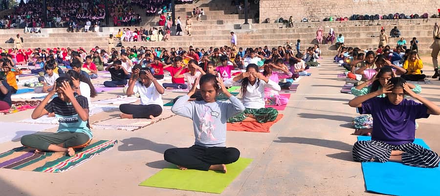 ಯೋಗ ಗುರು ಪತಂಜಲಿ ಯೋಗ ಟ್ರಸ್ಟ್ ನ ಸತೀಶ್ ನೇತೃತ್ವದಲ್ಲಿ ಯೋಗಾಭ್ಯಾಸ ನಡೆಯಿತು. ವಿವಿಧ ಶಾಲಾ-ಕಾಲೇಜುಗಳ ವಿದ್ಯಾರ್ಥಿಗಳು, ಸಾರ್ವಜನಿಕರು ಹಾಗೂ ವಿವಿಧ ಇಲಾಖೆಗಳ ಅಧಿಕಾರಿಗಳು- ಸಿಬ್ಬಂದಿ ಭಾಗವಹಿಸಿದ್ದರು.