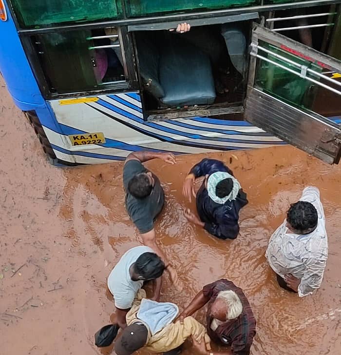 ಉದಯರಂಗ ಹೆಸರಿನ ಈ ಬಸ್ ಬೆಂಗಳೂರಿನಿಂದ ಮಳವಳ್ಳಿಗೆ ಹೊರಟಿತ್ತು. ಐವತ್ತಕ್ಕೂ ಹೆಚ್ಚು ಪ್ರಯಾಣಿಕರು ಇದ್ದರು. ಬಸ್ ನ ಅರ್ಧ ಮಟ್ಟಕ್ಕೆ ನೀರು ನಿಂತಿದ್ದು, ಮುಂದೆ ಚಲಿಸಲು ಸಾಧ್ಯವಾಗಲಿಲ್ಲ. ಇದರಿಂದಾಗಿ ಜನರನ್ನು ಕೆಳಗೆ ಇಳಿಸಲು ಸಾರ್ವಜನಿಕರು ನೆರವಾದರು.