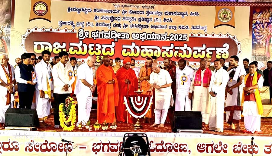 ಇಲ್ಲಿನ ಅಲ್ಲಮಪ್ರಭು ಮೈದಾನದಲ್ಲಿ (ಫ್ರೀಡಂ ಪಾರ್ಕ್) ಭಾನುವಾರ ಆರಂಭವಾದ ಭಗವದ್ಗೀತಾ ಅಭಿಯಾನ ರಾಜ್ಯಮಟ್ಟದ ಮಹಾ ಸಮರ್ಪಣಾ ಕಾರ್ಯಕ್ರಮ ಉದ್ಘಾಟಿಸಿ ಅವರು ಮಾತನಾಡಿದರು.