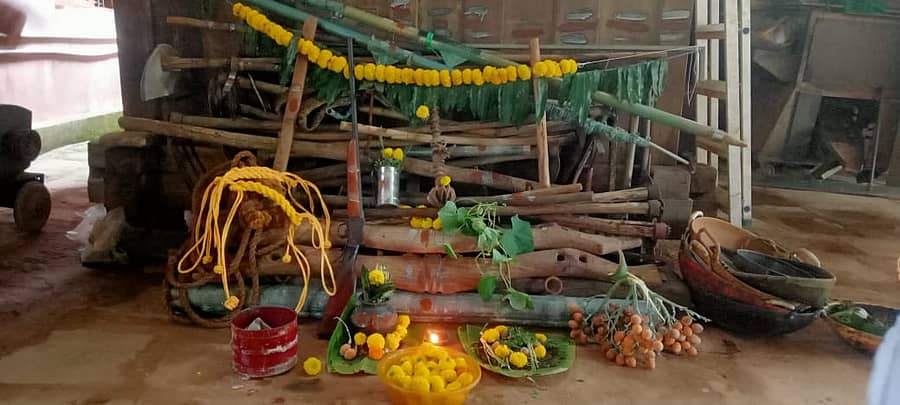 ಕೃಷಿ ಪರಿಕರಗಳಿಗೂ ಪೂಜೆ: ಕೃಷಿ ಕುಟುಂಬಗಳ ಸದಸ್ಯರು ಸಾಂಪ್ರದಾಯಿಕ ಕೃಷಿ ಪರಿಕರಗಳಿಗೂ ವಿಶೇಷ ಪೂಜೆ ಸಲ್ಲಿಸಿದರು. ನೇಗಿಲು, ನೊಗ, ನರಕೋಲು, ಜೊತಗ, ಕೊರಡು, ಹಡಿಮಂಚ, ಹೆಡಿಗೆ, ಬುಟ್ಟಿ, ಹಾರೆ, ಗುದ್ದಲಿ, ಪಿಕಾಸಿ, ಹಗ್ಗಗಳನ್ನು ಮನೆಯ ಅಂಗಳದಲ್ಲಿ ಅಂದವಾಗಿ ಜೋಡಿಸಿಟ್ಟು ಬಗೆ ಬಗೆ ಹೂವುಗಳಿಂದ ಸಿಂಗರಿಸಿದರು. ನಂತರ ಮನೆಯ ಯಜಮಾನ ವಿಶೇಷ ಪೂಜೆ ನೆರವೇರಿಸುವ ಸಂಪ್ರಾದಾಯವಿದೆ. ಈ ಹಿಂದೆ, ಎತ್ತಿನಗಾಡಿಗಳಿಗೆ ಪೂಜೆ ಸಲ್ಲಿಸಿ, ಎತ್ತಿನಗಾಡಿ ಓಟದ ಸ್ಪರ್ಧೆ ನಡೆಸಲಾಗುತ್ತಿತ್ತು. ಈಗ ಎತ್ತಿನಗಾಡಿಗಳು ಕಣ್ಮರೆ ಆಗಿವೆ.