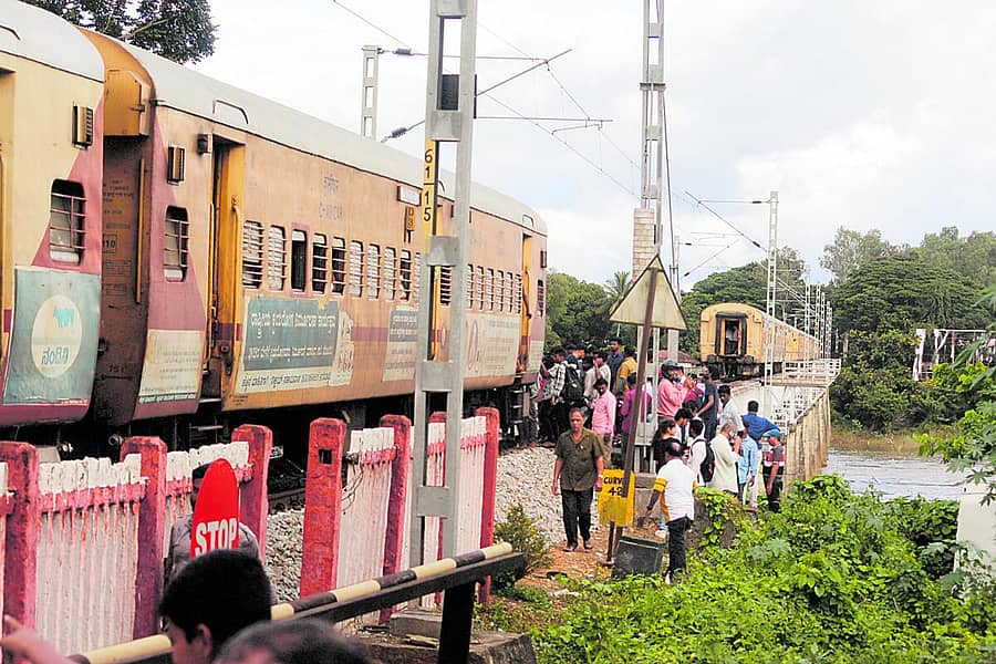 ಶಿವಮೊಗ್ಗ: ತಾಳಗುಪ್ಪದಿಂದ ಮೈಸೂರಿಗೆ ಹೊರಟಿದ್ದ ಇಂಟರ್ಸಿಟಿ ಎಕ್ಸ್ಪ್ರೆಸ್ (ರೈಲು ಸಂಖ್ಯೆ 16205) ರೈಲಿನ ಬೋಗಿಗಳ ನಡುವಿನ ಸಂಪರ್ಕ ಕೊಂಡಿ (ಅನ್ ಕಪ್ಲಿಂಗ್) ಬುಧವಾರ ಸಂಜೆ ಇಲ್ಲಿನ ತುಂಗಾ ನದಿ ಸೇತುವೆ ಮೇಲೆ ತುಂಡಾಗಿ ಕಳಚಿದ್ದರಿಂದ ಆತಂಕ ಉಂಟಾಗಿತ್ತು.