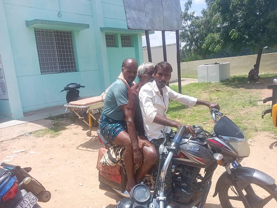 ಮೃತದೇಹ ಸಾಗಿಸಲು ಹೊನ್ನೂರಪ್ಪ ಮಗ ಗೋಪಾಲಪ್ಪ ಆಂಬುಲೆನ್ಸ್ ವಾಹನದ ಬಗ್ಗೆ ಕೇಂದ್ರದಲ್ಲಿ ವಿಚಾರಿಸಿದ್ದು, ವಾಹನ ಇಲ್ಲದಿರುವುದು ಗಮನಕ್ಕೆ ಬಂದಿದೆ. ತಕ್ಷಣವೇ ‘108’ ಆಂಬುಲೆನ್ಸ್ಗೆ ಕರೆ ಮಾಡಿದ್ದು, ಚಾಲಕರು ‘ನಮಗೆ ಶವ ಸಾಗಿಸಲು ಅವಕಾಶ ಇಲ್ಲ’ ಎಂದು ಹೇಳಿದ್ದಾರೆ. ಇದರಿಂದ ದಿಕ್ಕು ತೋಚದಂತಾದ ಗೋಪಾಲಪ್ಪ ಹಾಗೂ ಅವರ ಸಹೋದರ ಆಸ್ಪತ್ರೆಯಿಂದ ಸುಮಾರು 5 ಕಿ.ಮೀ ದೂರದಲ್ಲಿರುವ ಗ್ರಾಮಕ್ಕೆ ಬೈಕ್ನಲ್ಲೇ ಮೃತದೇಹ ಸಾಗಿಸಿದ್ದಾರೆ.
