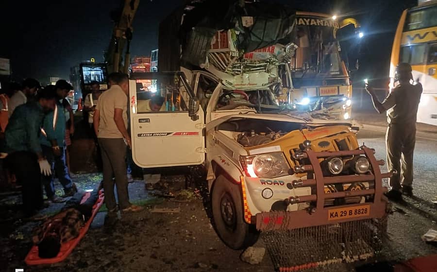 ಬೊಲೆರೋ ವಾಹನದಲ್ಲಿ ದ್ರಾಕ್ಷಿ ತುಂಬಿಕೊಂಡು ಬೆಂಗಳೂರಿಗೆ ಹೋಗುತ್ತಿದ್ದ ಸಮಯದಲ್ಲಿ ಚಿಕ್ಕನಹಳ್ಳಿ ಸಮೀಪ ಮುಂದೆ ಹೋಗುತ್ತಿದ್ದ ಲಾರಿಗೆ ಹಿಂದಿನಿಂದ ಡಿಕ್ಕಿ ಹೊಡೆದು ಅಪಘಾತ ಸಂಭವಿಸಿದೆ. ಬೊಲೆರೋದಲ್ಲಿದ್ದ ಉಮೇಶ್ ನಾಗಪ್ಪ ಹಾಗೂ ಸಂತೋಷ್ ಸುರೇಶ್ ಸ್ಥಳದಲ್ಲೇ ಮೃತಪಟ್ಟರೆ, ತೀವ್ರವಾಗಿ ಗಾಯಗೊಂಡಿದ್ದ ಚಾಲಕನಿಗೆ ಶಿರಾ ಸರ್ಕಾರಿ ಆಸ್ಪತ್ರೆಯಲ್ಲಿ ಚಿಕಿತ್ಸೆ ನೀಡಲಾಯಿತು. ಕಳ್ಳಂಬೆಳ್ಳ ಠಾಣೆ ಪೊಲೀಸರು ಪ್ರಕರಣ ದಾಖಲಿಸಿಕೊಂಡಿದ್ದಾರೆ.
