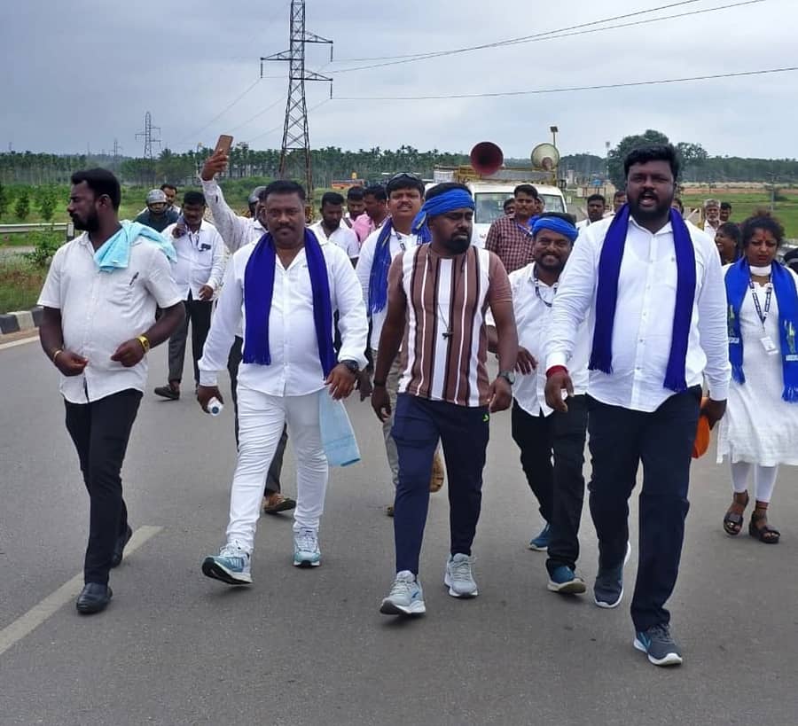ಪಾದಯಾತ್ರೆಯಲ್ಲಿ ಜೈ ಭೀಮ್ ಸೇನೆ ರಾಜ್ಯಾಧ್ಯಕ್ಷ ದಿನೇಶ್, ಯುವ ಘಟಕದ ರಾಜ್ಯಾಧ್ಯಕ್ಷ ಸಚಿನ್, ಸಂಘಟನಾ ಕಾರ್ಯದರ್ಶಿ ಮಧು, ರಾಜ್ಯ ಉಪಾಧ್ಯಕ್ಷ ಮಂಜುನಾಥ್, ಅಲ್ಪಸಂಖ್ಯಾತ ವಿಭಾಗದ ರಾಜ್ಯಾಧ್ಯಕ್ಷ ರಿಜ್ವಾನ್, ರಾಜ್ಯ ಪ್ರಧಾನ ಕಾರ್ಯದರ್ಶಿ ಇಮ್ರಾನ್, ರಾಜ್ಯ ಯುವ ಘಟಕದ ಉಪಾಧ್ಯಕ್ಷ ವಿಜಯ ಭಾಸ್ಕರ್, ಜಿಲ್ಲಾಧ್ಯಕ್ಷ ಗಿರೀಶ್, ಮಹಿಳಾ ಅಧ್ಯಕ್ಷೆ ಮಂಜುಳಾ, ಸಾದತ್, ತಾಲ್ಲೂಕು ಅಧ್ಯಕ್ಷ ರಿಜ್ವಾನ್, ನಗರಾಧ್ಯಕ್ಷ ವಾಸುಗೌಡ ಹಾಗೂ ಪದಾಧಿಕಾರಿಗಳು ಇದ್ದರು.