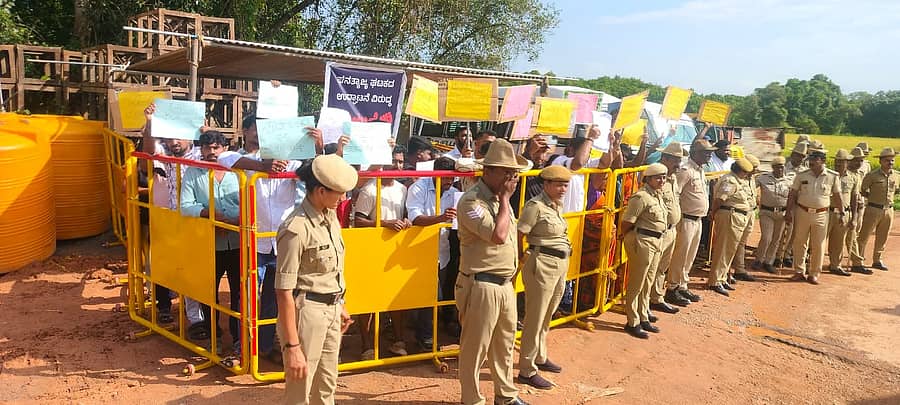 ಘಟಕ ಉದ್ಘಾಟನೆ ವಿರೋಧಿಸಿ ಸ್ಥಳೀಯರು ಶುಕ್ರವಾರ ರಾತ್ರಿ, ಶನಿವಾರ ಬೆಳಿಗ್ಗೆ ಕಪ್ಪು ಪಟ್ಟಿ ಧರಿಸಿ ಘಟಕದ ಸಮೀಪ ಪ್ರತಿಭಟನೆ ನಡೆಸಿದರು.