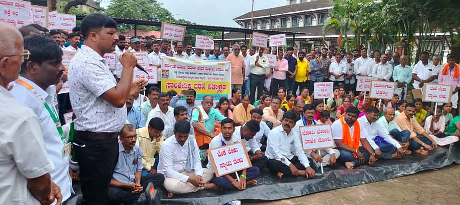 ಉಡುಪಿ: ಜಾತಿ, ಸಿಂಧುತ್ವ ಪ್ರಮಾಣ ಪತ್ರ ನೀಡಬೇಕೆಂದು ಆಗ್ರಹಿಸಿ ಕರ್ನಾಟಕ ಭೋವಿ ಸಮಾಜ ಸೇವಾ ಸಂಘದ ವತಿಯಿಂದ ಮಣಿಪಾಲದ ಜಿಲ್ಲಾಧಿಕಾರಿ ಕಚೇರಿ ಮುಂಭಾಗದಲ್ಲಿ ಗುರುವಾರ ಪ್ರತಿಭಟನೆ ನಡೆಯಿತು.