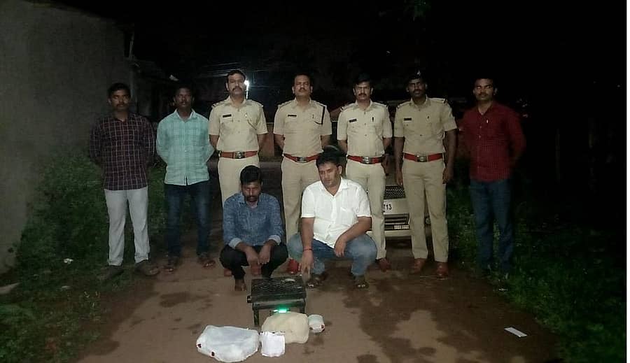 ಸದ್ಯ ಬೆಳಗಾವಿಯಲ್ಲಿ ವಾಸವಿದ್ದ ಅಂಕೋಲಾ ತಾಲ್ಲೂಕಿನ ಅವರ್ಸಾ ಮೂಲದ ಸಂತೋಷ ಬಾಲಚಂದ್ರ ಕಾಮತ್ (43), ಶಿರಸಿಯ ಮರಾಠಿಕೊಪ್ಪದ ರಾಜೇಶ ಮಂಜುನಾಥ ನಾಯ್ಕ ಅಲಿಯಾಸ್ ರಾಜೇಶ ಪೂಜಾರಿ (32) ಬಂಧಿತರು.
