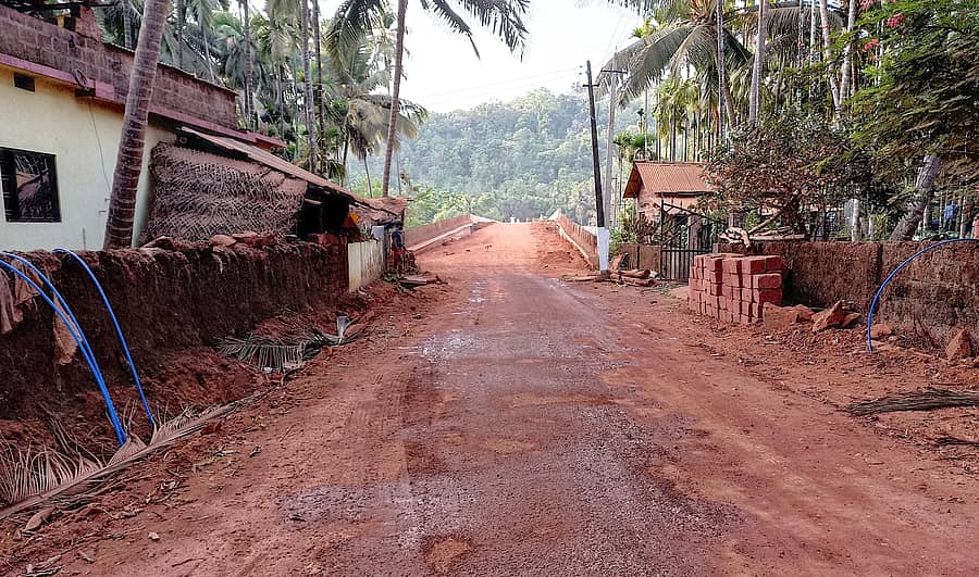 ‘ಸೇತುವೆ ನಿರ್ಮಾಣಕ್ಕೆ ಮಣ್ಣು, ಕಲ್ಲು, ಕಬ್ಬಿಣ ಸಾಗಿಸಲು ಭಾರಿ ವಾಹನ ಓಡಾಡಿ ಊರಿನ ರಸ್ತೆ ಹಾಳಾಗಿದೆ. ಸಂಪರ್ಕ ರಸ್ತೆ ನಿರ್ಮಿಸಲು ಸುರಿದ ಮಣ್ಣಿನ ಧೂಳಿನಿಂದ ರಸ್ತೆಯಂಚಿನ ಹತ್ತಾರು ಮನೆಗಳವರು ಒಂದು ವರ್ಷದಿಂದ ಕಿರಿ ಕಿರಿ ಅನುಭವಿಸುತ್ತಿದ್ದಾರೆ. ಕುಡಿಯವ ನೀರಿಗೆ ತೊಂದರೆ ಇದ್ದರೂ ಧೂಳು ನಿವಾರಿಸಲು ನಿತ್ಯ ರಸ್ತೆಗೆ ನೀರು ಹಾಕುತ್ತಿದ್ದೇವೆ’ ಎಂದು ಸ್ಥಳೀಯರಾದ ಜಗದೀಶ ನಾಯ್ಕ, ಶ್ರೀರಮಣ ನಾಯ್ಕ ಹೇಳಿದರು.
