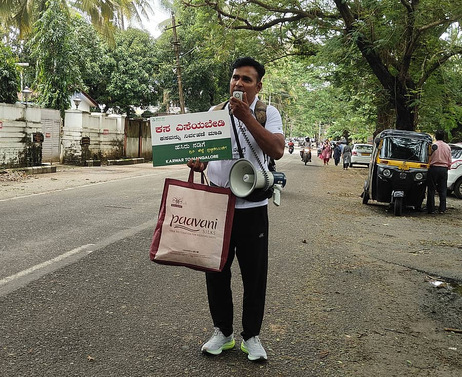 ‘ಪಾದಯಾತ್ರೆ ವೇಳೆ ಧ್ವನಿವರ್ಧಕದ ಮೂಲಕ ಸ್ವಚ್ಛತೆ ಮಹತ್ವದ ಕುರಿತು ಘೊಷಣೆ ಕೂಗುತ್ತ ಸಾಗುತ್ತೇನೆ. ಪರಿಸರ ಶುಚಿಯಾಗಿಟ್ಟುಕೊಳ್ಳುವ ಮಾಹಿತಿಗಳುಳ್ಳ ಕರಪತ್ರವನ್ನೂ ಹಂಚಲಿದ್ದೇನೆ’ ಎಂದರು.