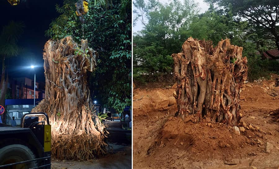 ಆದರೆ, ಬೃಹತ್ ಗಾತ್ರದ ಮರವನ್ನು ಕಡಿದು ಹಾಕುವ ಬದಲು ಬುಡ ಸಮೇತ ಪಕ್ಕದಲ್ಲಿರುವ ಖಾಲಿ ಜಾಗಕ್ಕೆ ಸ್ಥಳಾಂತರಿಸಲು ನೌಕಾನೆಲೆಯ ಅಧಿಕಾರಿಗಳು ಯೋಚಿಸಿದರು. ಕೆಲವು ದಿನಗಳ ಕಾರ್ಯಾಚರಣೆ ನಡೆಸಿ ಮರದ ಬುಡವನ್ನು ಬಿಡಿಸಲಾಗಿತ್ತು. ಬಳಿಕ ಎರಡು ಜೆಸಿಬಿಗಳ ಮೂಲಕ ಮರವನ್ನು ಮೇಲಕ್ಕೆತ್ತಿ, ಈಗಿದ್ದ ಸ್ಥಳಕ್ಕಿಂತ ಸ್ವಲ್ಪ ದೂರದಲ್ಲಿ ನೆಡಲಾಯಿತು.