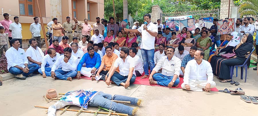 ಪ್ರತಿಕೃತಿ ಇಟ್ಟು ಪ್ರತಿಭಟನೆ: ಸದಸ್ಯರು ಆಯುಕ್ತ ಚಂದ್ರಪ್ಪ ಅವರ ಪ್ರತಿಕೃತಿಯನ್ನು ತಮ್ಮ ಮುಂದುಗಡೆಯೇ ಇಟ್ಟಿದ್ದರು. ಒಂದು ಹಂತದಲ್ಲಿ ಪ್ರತಿಕೃತಿ ದಹಿಸಲು ಸಹ ಯತ್ನಿಸಿದರು. ಆದರೆ, ಪೊಲೀಸರ ಸೂಚನೆಯಂತೆ ಅದನ್ನು ಆ ಹಂತದಲ್ಲಿ ಮುಂದೂಡಿದರು.