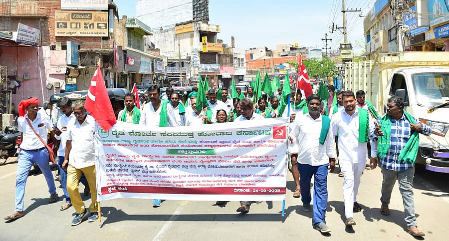 ಹೊಸಪೇಟೆ (ವಿಜಯನಗರ): ಭೂಸ್ವಾಧೀನ ತಿದ್ದುಪಡಿ ಕಾಯ್ದೆ, ಎಪಿಎಂಸಿ ತಿದ್ದುಪಡಿ ಕಾಯ್ದೆ, ಅಗತ್ಯ ವಸ್ತುಗಳ ತಿದ್ದುಪಡಿ ಕಾಯ್ದೆಗಳನ್ನು ಹಿಂಪಡೆಯಬೇಕೆಂದು ಆಗ್ರಹಿಸಿ ‘ಸಂಯುಕ್ತ ಹೋರಾಟ ಕರ್ನಾಟಕ’ ಸಂಘಟನೆ ಅಡಿ ರೈತರು ತಾಲ್ಲೂಕಿನ ಹಂಪಿಯಿಂದ ನಗರದ ವರೆಗೆ ಶುಕ್ರವಾರ ಪಾದಯಾತ್ರೆ ನಡೆಸಿದರು.