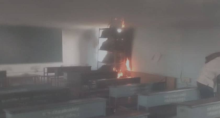 ಮೊದಲ ಸೆಮಿಸ್ಟರ್ ಪುಸ್ತಕಗಳು ಬೆಂಕಿಗೆ ಆಹುತಿಯಾಗಿವೆ ಎಂದು ಪ್ರಭಾರ ಮುಖ್ಯ ಶಿಕ್ಷಕ ವೀರನಗೌಡ ತಿಳಿಸಿದ್ದಾರೆ.