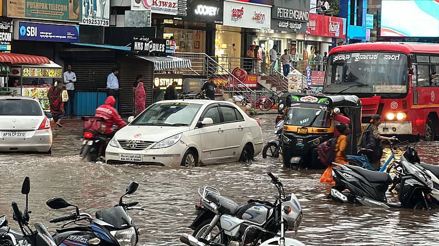 ವಾಹನ ಸಂಚಾರಕ್ಕೆ ತೊಂದರೆ: ಸಂಜೆ ಸುಮಾರು ಮೂರು ಗಂಟೆ ಕಾಲ ಬಿಟ್ಟು ಬಿಟ್ಟು ಬಿರುಸಿನಿಂದ ಮಳೆ ಸುರಿಯಿತು. ಹೀಗಾಗಿ ಕಾಲೇಜು ರಸ್ತೆ, ನೂರು ಹಾಸಿಗೆ ಆಸ್ಪತ್ರೆ ರಸ್ತೆ ಸಹಿತ ಹಲವೆಡೆ ರಸ್ತೆಯಲ್ಲಿ ಒಂದು ಅಡಿಯಷ್ಟು ನೀರು ನಿಂತಿತ್ತು. ವಾಹನ ಸಂಚಾರಕ್ಕೆ ಅಡಚಣೆ ಉಂಟಾಯಿತು.