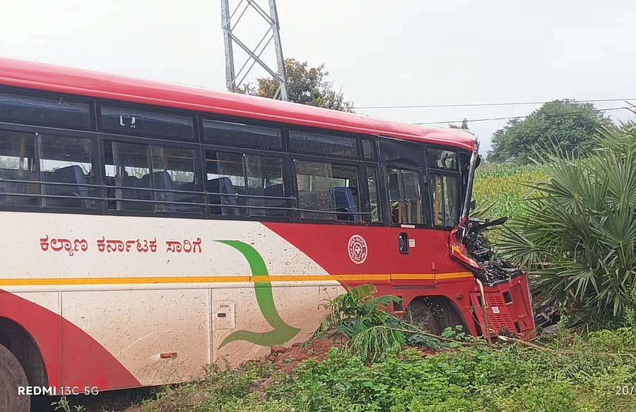 ಮರಿಯಮ್ಮನಹಳ್ಳಿ (ವಿಜಯನಗರ ಜಿಲ್ಲೆ): ಟಿಪ್ಪರ್ ಲಾರಿಗೆ ಹಿಂದಿನಿಂದ ಕಲ್ಯಾಣ ಕರ್ನಾಟಕ ರಸ್ತೆ ಸಾರಿಗೆ ಸಂಸ್ಥೆಯ (ಕೆಕೆಆರ್ಟಿಸಿ) ಬಸ್ ಡಿಕ್ಕಿ ಹೊಡೆದ ಪರಿಣಾಮ ನಿರ್ವಾಹಕ ಸ್ಥಳದಲ್ಲೇ ಸಾವನ್ನಪ್ಪಿದ್ದು, ಚಾಲಕ ತೀವ್ರ ಗಾಯಗೊಂಡ ಘಟನೆ ಸಮೀಪದ ಹಾರುವನಹಳ್ಳಿ ಕ್ರಾಸ್ ಬಳಿಯ ರಾಷ್ಟ್ರೀಯ ಹೆದ್ದಾರಿ-50ರಲ್ಲಿ ಮಂಗಳವಾರ ರಾತ್ರಿ ನೆಡೆದಿದೆ.