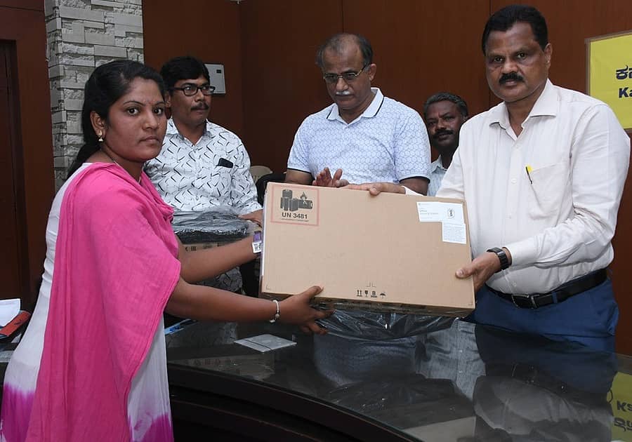ವಿಜಯನಗರ (ಹೊಸಪೇಟೆ): ಇಲ್ಲಿನ ಹಂಪಿ ಕನ್ನಡ ವಿಶ್ವವಿದ್ಯಾಲಯದ 70 ವಿದ್ಯಾರ್ಥಿಗಳಿಗೆ ಸೋಮವಾರ ಕುಲಪತಿ ಪ್ರೊ.ಸ.ಚಿ. ರಮೇಶ ಅವರು ಲ್ಯಾಪ್ಟಾಪ್ ವಿತರಿಸಿದರು.