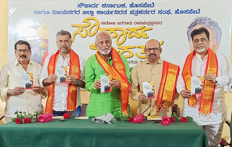 ಇಲ್ಲಿನ ಪತ್ರಿಕಾ ಭವನದಲ್ಲಿ ಶನಿವಾರ ಸೌಹಾರ್ದ ಕರ್ನಾಟಕ ಹೊಸಪೇಟೆ ಮತ್ತು ಜಿಲ್ಲಾ ಕಾರ್ಯನಿರತ ಪತ್ರಕರ್ತರ ಸಂಘದ ಸಹಯೋಗದಲ್ಲಿ ಬರಗೂರು ರಾಮಚಂದ್ರಪ್ಪ ಅವರ ‘ಸೌಹಾರ್ದ ಭಾರತ ಸಮಾನತೆಯ ಸ್ನೇಹಿತ..’ ಕೃತಿಯನ್ನು ಜನಾರ್ಪಣೆಗೊಳಿಸಿ ಅವರು ಮಾತನಾಡಿದರು.