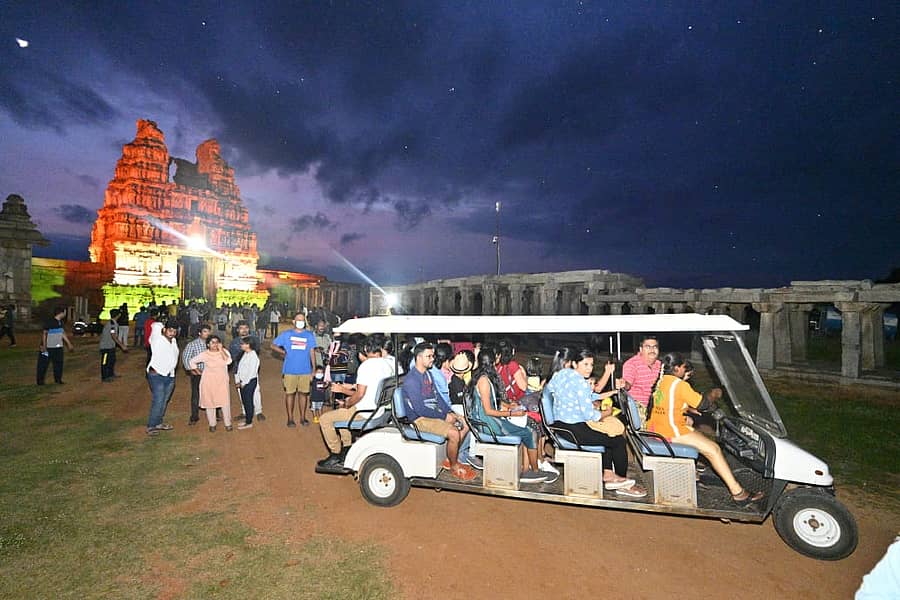 ಹೊಸಪೇಟೆ (ವಿಜಯನಗರ): ಹಂಪಿ ವಿಶ್ವ ಪಾರಂಪರಿಕ ಪ್ರದೇಶ ನಿರ್ವಹಣಾ ಪ್ರಾಧಿಕಾರವು ವಿಶ್ವಪ್ರಸಿದ್ಧ ಹಂಪಿಯಲ್ಲಿ ರಾತ್ರಿ 9ರ ವರೆಗೆ ಬ್ಯಾಟರಿಚಾಲಿತ ವಾಹನಗಳ ಸೌಕರ್ಯ ಕಲ್ಪಿಸಿದೆ.