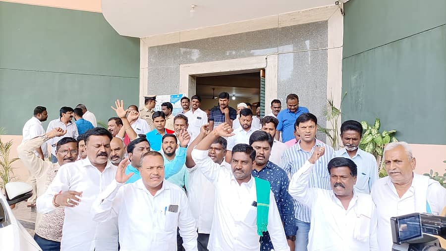 ನಂತರ ಸರ್ಕಾರದ ವಿರುದ್ಧ ಘೋಷಣೆಗಳನ್ನು ಹಾಕುತ್ತ ಸಭೆಯಿಂದ ಹೊರಬಂದರು.ವಾಲ್ಮೀಕಿ ಪೀಠದ ಧರ್ಮದರ್ಶಿ ಜಂಬಯ್ಯ ನಾಯಕ, ಮುಖಂಡರಾದ ದುರುಗಪ್ಪ ಪೂಜಾರಿ, ಸೋಮಶೇಖರ್ ಬಣ್ಣದಮನೆ, ಭರಮಪ್ಪ, ಶ್ರೀಕಂಠ, ಶಿವಕುಮಾರ, ತಾಯಪ್ಪ ನಾಯಕ ಇತರರಿದ್ದರು.