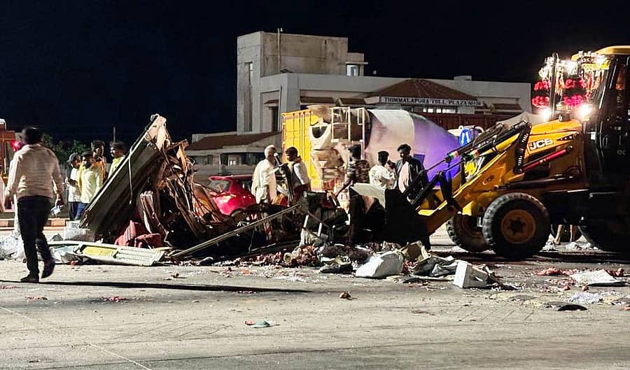 ಆಲಮಟ್ಟಿಯಿಂದ ಮೈಸೂರಿಗೆ ದಾಳಿಂಬೆ ತುಂಬಿ ತೆರಳುತ್ತಿದ್ದ ಲಾರಿ ಟೋಲ್ನಲ್ಲಿ ಅತಿವೇಗವಾಗಿ ಬಂದು, ಮೊದಲು ಟೋಲ್ನಲ್ಲಿ ಹಣ ಪಾವತಿಸುತ್ತಿದ್ದ ಬೊಲೆರೊಗೆ ಡಿಕ್ಕಿ ಹೊಡೆದು, ನಂತರ ಟೋಲ್ ರೂಮ್ ಪಕ್ಕದ ಡಿವೈಡರ್ಗೆ ಡಿಕ್ಕಿ ಹೊಡೆದಿದೆ.