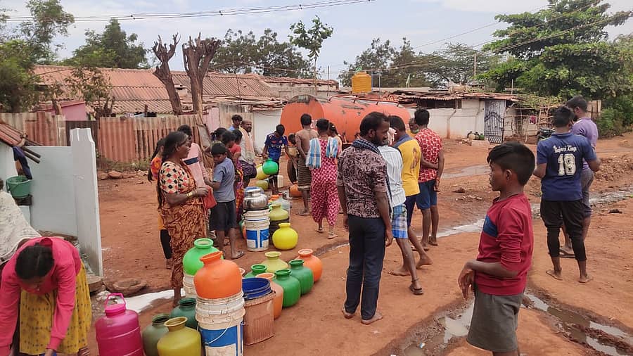 ಹೊಸಪೇಟೆ (ವಿಜಯನಗರ): ವಾಂತಿಭೇದಿಯಿಂದ ನಲುಗಿದ ನಗರದ ಕಾರಿಗನೂರಿನ ಶಿಕಾರಿ ಕ್ಯಾಂಪ್ ಪ್ರದೇಶಕ್ಕೆ ಭಾನುವಾರ ನಗರಸಭೆ ವತಿಯಿಂದ ಟ್ಯಾಂಕರ್ ಮೂಲಕ ನೀರು ಪೂರೈಸಲಾಗಿದ್ದು, ಜನ ಸರದಿಯಲ್ಲಿ ನಿಂತು ನೀರು ಹಿಡಿದುಕೊಂಡರು.