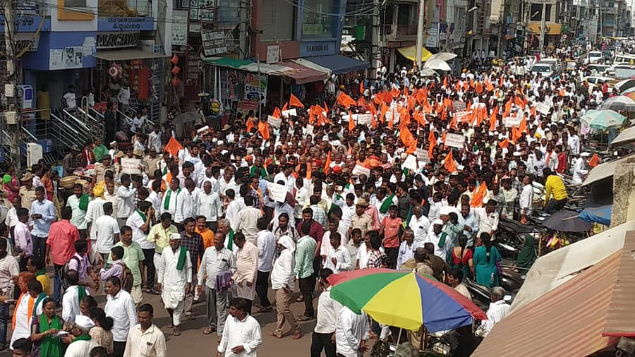 ಇಲ್ಲಿನ ಶ್ರೀ ಸಿದ್ದೇಶ್ವರ ದೇವಸ್ಥಾನದ ಆವರಣದಿಂದ ಜಿಲ್ಲಾಧಿಕಾರಿ ಕಚೇರಿ ವರೆಗೆ ನಡೆದ ಪ್ರತಿಭಟನಾ ಜಾಥಾದಲ್ಲಿ ಕೇಂದ್ರ ಸಚಿವೆ ಶೋಭಾ ಕರಂದ್ಲಾಜೆ, ಸಂಸದರಾದ ವಿಶ್ವೇಶ್ವರ ಹೆಗಡೆ ಕಾಗೇರಿ, ರಮೇಶ ಜಿಗಜಿಣಗಿ, ಶಾಸಕ ಬಸನಗೌಡ ಪಾಟೀಲ ಯತ್ನಾಳ, ಕೊಲ್ಹಾಪುರ ಕನ್ಹೇರಿ ಮಠದ ಅದೃಶ್ಯ ಕಾಡಸಿದ್ದೇಶ್ವರ ಸ್ವಾಮೀಜಿ, ಕೂಡಲಸಂಗಮ ಪಂಚಮಸಾಲಿ ಪೀಠದ ಬಸವಜಯ ಮೃತ್ಯುಂಜಯ ಸ್ವಾಮೀಜಿ, ಜ್ಞಾನ ಯೋಗಾಶ್ರಮದ ಬಸವಲಿಂಗ ಸ್ವಾಮೀಜಿ, ಭಾರತೀಯ ಕಿಸಾನ್ ಸಂಘದ ರಾಜ್ಯ ಘಟಕದ ಅಧ್ಯಕ್ಷ ಬಿ.ಎಂ.ಕೋಕರೆ, ಗುರುನಾಥ ಬಗಲಿ, ಮಲ್ಲನಗೌಡ ಪಾಟೀಲ, ಬಿಜೆಪಿ ಮುಖಂಡರಾದ ಉಮೇಶ ಕಾರಜೋಳ, ವಿಜುಗೌಡ ಪಾಟೀಲ, ಆರ್.ಎಸ್.ಪಾಟೀಲ ಕೂಚಬಾಳ, ಗುರುಲಿಂಗಪ್ಪ ಅಂಗಡಿ, ಅಪ್ಪು ಪಟ್ಟಣಶೆಟ್ಟಿ, ರಮೇಶ ಭೂಸನೂರ, ವಿಜಯ ಜೋಶಿ ಮತ್ತಿತರರು ಪ್ರತಿಭಟನೆಯಲ್ಲಿ ಪಾಲ್ಗೊಂಡಿದ್ದರು.