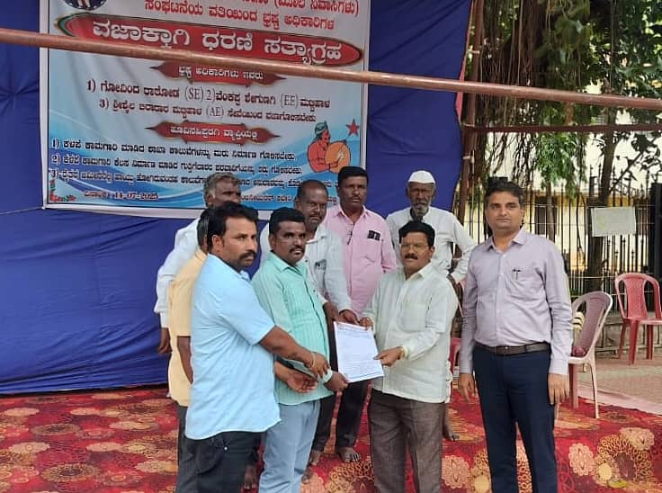 ಧರಣಿ ಸ್ಥಳಕ್ಕೆ ಉಪ ಮುಖ್ಯ ಎಂಜಿನಿಯರ್ ಐ.ಎಲ್. ಕಳಸಾ, ತಾಂತ್ರಿಕ ಸಹಾಯಕ ಉಮೇಶ ಮತ್ತಿತರರು ಮಂಗಳವಾರ ಭೇಟಿ ನೀಡಿ ಮನವಿ ಸ್ವೀಕರಿಸಿ, ಧರಣಿ ಹಿಂಪಡೆಯುವಂತೆ ಮನವಿ ಮಾಡಿದರು. ಆದರೆ ಪ್ರತಿಭಟನಕಾರರು ಪ್ರತಿಭಟನೆ ಮುಂದುವರೆಸುವುದಾಗಿ ಪಟ್ಟು ಹಿಡಿದರು.