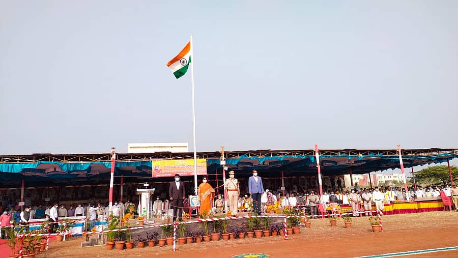 ವಿಜಯಪುರ: ಜಿಲ್ಲಾಡಳಿತದಿಂದ ಅಕ್ಕಮಹಾದೇವಿ ಮಹಿಳಾ ವಿಶ್ವವಿದ್ಯಾಲಯದ ಆವರಣದಲ್ಲಿ ಏರ್ಪಡಿಸಿದ್ದ ಕರ್ನಾಟಕ ರಾಜ್ಯೋತ್ಸವದಲ್ಲಿ ಜಿಲ್ಲಾ ಉಸ್ತುವಾರಿ ಸಚಿವೆ ಶಶಿಕಲಾ ಜೊಲ್ಲೆ ರಾಷ್ಟ್ರ ಧ್ವಜಾರೋಹಣ ನೆರವೇರಿಸಿದರು.