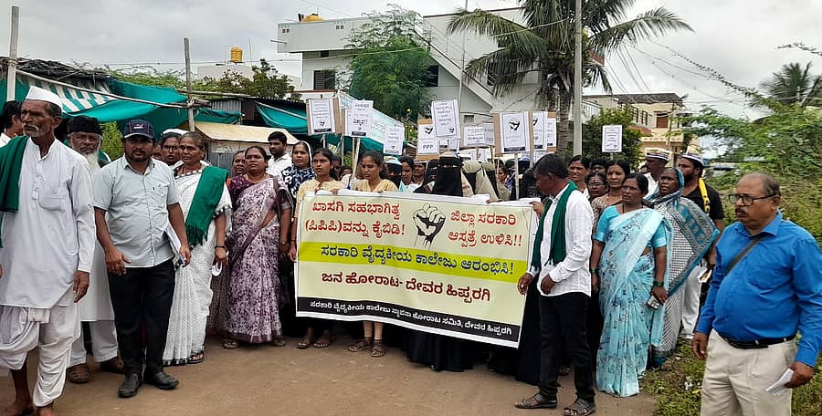 ಹೋರಾಟ ಸಮಿತಿಯ ಪ್ರಕಾಶ ಗುಡಿಮನಿ ಮಾತನಾಡಿ, ‘ಸರ್ಕಾರ ಪಿಪಿಪಿ ಮಾದರಿಯ ವೈದ್ಯಕೀಯ ಕಾಲೇಜು ಆರಂಭಿಸುವ ಹುನ್ನಾರದಲ್ಲಿದೆ. ಅಷ್ಟೇ ಅಲ್ಲ ಜಿಲ್ಲೆಯ ಶಾಸಕರೊಬ್ಬರು ₹500 ಕೋಟಿ ಬಂಡವಾಳ ಹೂಡುವುದಾಗಿ ಸದನದಲ್ಲೇ ಹೇಳಿದ್ದಾರೆ. ಅವರಿಗೆ ಖಾಸಗಿ ಕಾಲೇಜು ಬೇಕೆನಿಸಿದರೆ ನಾಲ್ಕಾರು ಖಾಸಗಿ ಕಾಲೇಜುಗಳನ್ನು ಆರಂಭಿಸಲಿ. ಆದರೆ ಪಿಪಿಪಿ ಹೆಸರಲ್ಲಿ ಸರ್ಕಾರಿ ಕಾಲೇಜು ಅಪಹರಿಸುವುದನ್ನು ಇಡೀ ಜಿಲ್ಲೆಯ ಜನತೆ ಖಂಡಿಸುತ್ತದೆ’ ಎಂದರು.