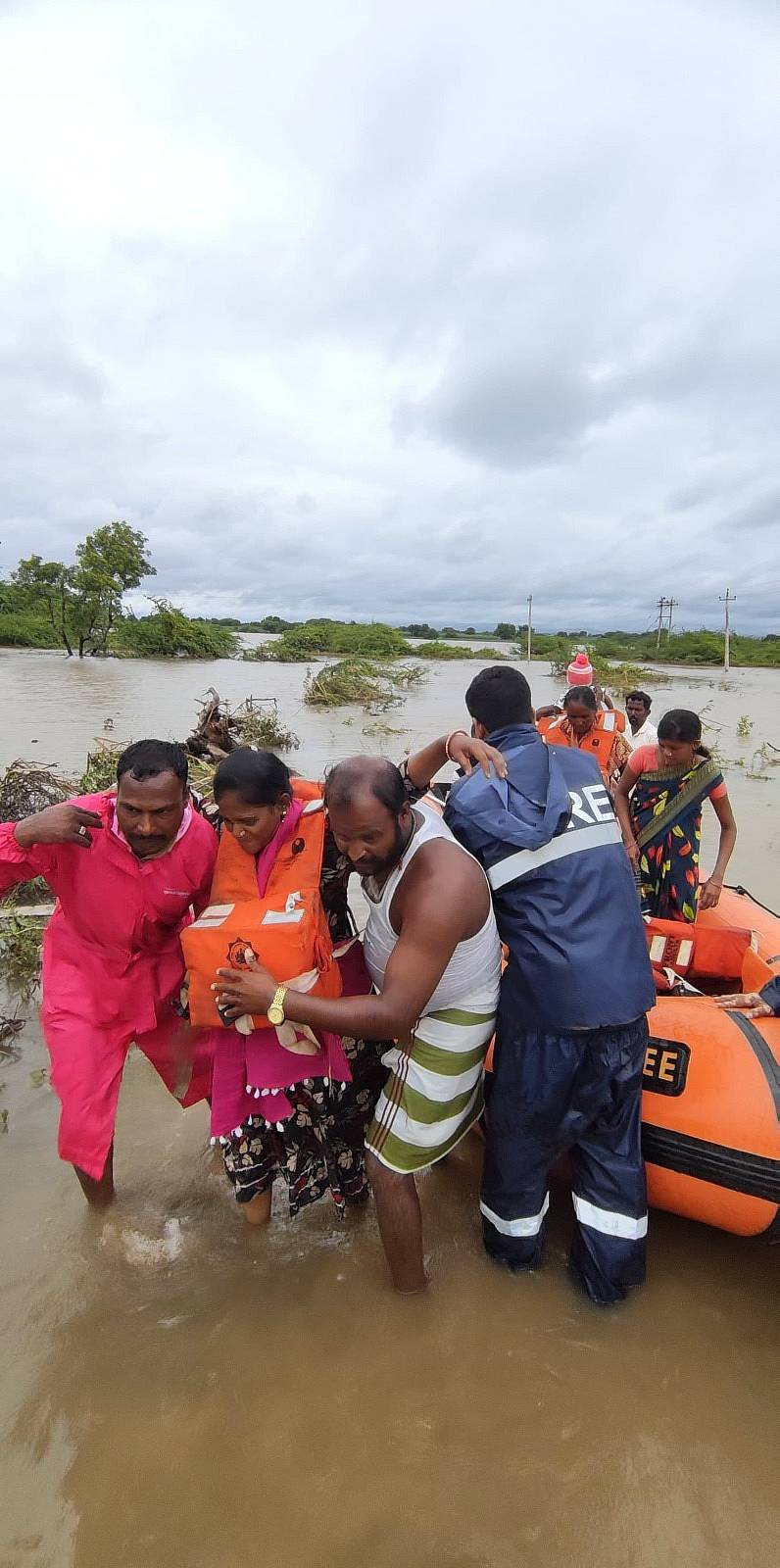 ಆಲಮೇಲ ತಾಲ್ಲೂಕಿನ ಶಂಬೇವಾಡ ಗ್ರಾಮದಲ್ಲಿ ಭೀಮಾ ನದಿಯ ಪ್ರವಾಹದಲ್ಲಿ ಸಿಲುಕಿದ್ದ ಮೂವರು ಗರ್ಭಿಣಿಯರು, ಇಬ್ಬರು ಬಾಲಕರು, ಒಂದು ಮಗು ಸೇರಿದಂತೆ 10ಕ್ಕೂ ಹೆಚ್ಚು ಜನರನ್ನು ಅಗ್ನಿ ಶಾಮಕ ಸಿಬ್ಬಂದಿ ಬೋಟ್ ಮೂಲಕ ತೆರಳಿ ರಕ್ಷಣೆ ಮಾಡಿದ್ದಾರೆ.