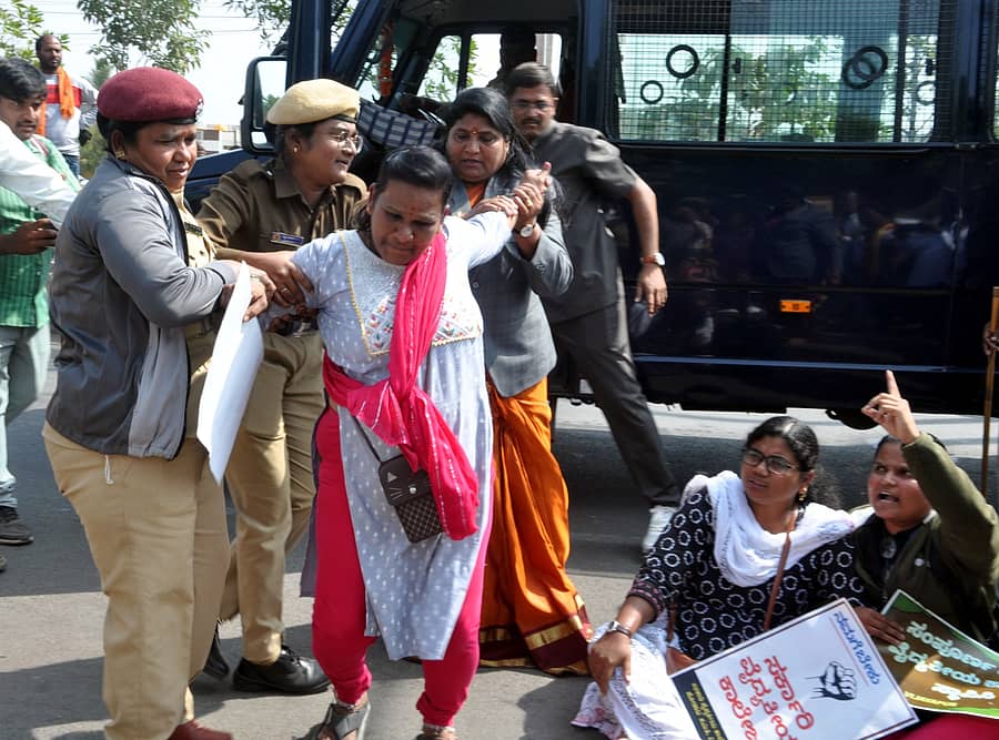 ಹೋರಾಟ ಸಮಿತಿ ಸದಸ್ಯರಾದ ಅನಿಲ ಹೊಸಮನಿ, ಅರವಿಂದ ಕಲುಲಕರ್ಣಿ, ಭಗವಾನ್ ರೆಡ್ಡಿ, ಸಿದ್ದಲಿಂಗ ಬಾಗೇವಾಡಿ, ಭರತ್ ಎಚ್.ಟಿ., ಮಲ್ಲಿಕಾರ್ಜುನ ಎಚ್.ಟಿ., ಅಕ್ರಂ ಮಾಶಾಳಕರ, ಭೋಗೇಶ್ ಸೋಲಾಪುರ, ಲಲಿತಾ ಬಿಜ್ಜರಗಿ, ಸುರೇಶ ಬಿಜಾಪುರ, ಶಿವಬಾಳಮ್ಮ, ಗೀತಾ ಎಚ್.ಟಿ., ಜಗದೇವ ಸೂರ್ಯವಂಶಿ ಸೇರಿದಂತೆ 30ಕ್ಕೂ ಅಧಿಕ ಪ್ರತಿಭಟನಾಕಾರರನ್ನು ಪೊಲೀಸರು ವಶಕ್ಕೆ ಪಡೆದು, ಜಿಲ್ಲೆಯ ಹೊರ್ತಿ, ಝಳಕಿ ಠಾಣೆಗೆ ಕೊರೆದೊಯ್ದು ದಿನವಿಡಿ ಕೂರಿಸಿಕೊಂಡಿದ್ದರು. ಬಳಿಕ ಹೋರಾಟಗಾರರ ವಿರುದ್ಧ ದೂರು ದಾಖಲಿಸಿಕೊಂಡು ಬಿಡುಗಡೆಗೊಳಿಸಿದರು.
