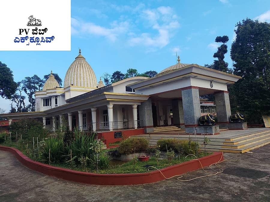 ಈ ಆಶ್ರಮವನ್ನು 1927ರಲ್ಲಿ ನಿರ್ಮಲಾನಂದ ಸ್ವಾಮೀಜಿ ಹಾಗೂ ಶಾಂಭವಾನಂದರು ಸ್ಥಾಪಿಸಿದರೂ, 2008ರವರೆಗೂ ಇದರ ಪ್ರಾರ್ಥನಾ ಮಂದಿರವು ಹೆಂಚಿನ ಚಾವಣಿ ಹೊಂದಿತ್ತು. 2007–08ರಲ್ಲಿ ಆಶ್ರಮದ ಅಧ್ಯಕ್ಷರಾಗಿದ್ದ ಜಗದಾತ್ಮಾನಂದ ಸ್ವಾಮೀಜಿ ಕೊಡಗು ಮತ್ತು ದೇಶದ ಜನರ ಬೆಂಬಲದೊಂದಿಗೆ ಹೆಂಚಿನ ಮನೆಯ ಕಟ್ಟಡ ಕೆಡವಿ ಅದೇ ಜಾಗದಲ್ಲಿ ರಾಮಕೃಷ್ಣ, ಶಾರದಾಮಾತೆ ಮತ್ತು ಸ್ವಾಮಿ ವಿವೇಕಾನಂದರು ಇರುವ ಬೃಹತ್ ಆಲಯ ನಿರ್ಮಿಸಿದರು.