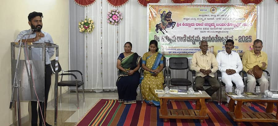 ನಗರದ ಜಿಲ್ಲಾ ಕಸಾಪ ಭವನದಲ್ಲಿ ಗುರುವಾರ ಜಿಲ್ಲಾಡಳಿತ, ಜಿಲ್ಲಾ ಪಂಚಾಯಿತಿ, ಕನ್ನಡ ಮತ್ತು ಸಂಸ್ಕೃತಿ ಇಲಾಖೆ, ನಗರಸಭೆ ಹಾಗೂ ವೀರರಾಣಿ ಕಿತ್ತೂರು ಚನ್ನಮ್ಮ ಜಯಂತ್ಯುತ್ಸವ ಸಮಿತಿ ವತಿಯಿಂದ ಆಯೋಜಿಸಿದ್ದ ಕಿತ್ತೂರು ರಾಣಿ ಚನ್ನಮ್ಮ ಜಯಂತಿ ಕಾರ್ಯಕ್ರಮದಲ್ಲಿ ಅವರು ಮಾತನಾಡಿದರು.
