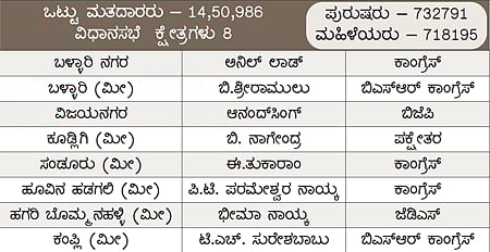 ಕಳೆದ ಚುನಾವಣೆಯಲ್ಲಿ ಜಯಿಸಿದ್ದ ಶಾಂತಾ, ಸೋದರನ ಪಕ್ಷದೊಂದಿಗೆ ಗುರುತಿಸಿಕೊಂಡಿರುವುದರಿಂದ ಮತ್ತೆ ಕಣಕ್ಕಿಳಿಯುವ ಆಲೋಚನೆಯನ್ನೇ ಕೈಬಿಟ್ಟಿದ್ದಾರೆ. ಒಂದೊಮ್ಮೆ ಶ್ರೀರಾಮುಲು ಬಿಜೆಪಿ ಸೇರ್ಪಡೆ ಯತ್ನಕ್ಕೆ ಹಿನ್ನಡೆಯಾಗಿ ತಾವು ಸ್ಥಾಪಿಸಿರುವ ಪಕ್ಷದಿಂದಲೇ ಕಣಕ್ಕಿಳಿಯುವಂತಾದಲ್ಲಿ ಕ್ಷೇತ್ರದ ಸ್ಪರ್ಧಾ ಚಿತ್ರಣವೇ ಬದಲಾಗಲಿದೆ.