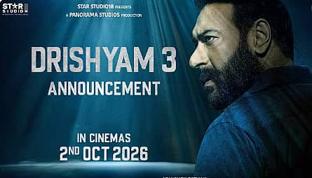 ಅಜಯ್ ದೇವಗನ್ ಅಭಿನಯದ ದೃಶ್ಯಂ 3 ಸಿನಿಮಾ ಟೀಸರ್ ಬಿಡುಗಡೆಯಾಗಿದ್ದು, ಸಿನಿಮಾ 2026ರ ಅಕ್ಟೋಬರ್ 2ರಂದು ಬಿಡುಗಡೆಯಾಗಲಿದೆ ಎಂದು ಚಿತ್ರತಂಡ ಮಾಹಿತಿ ನೀಡಿದೆ.
