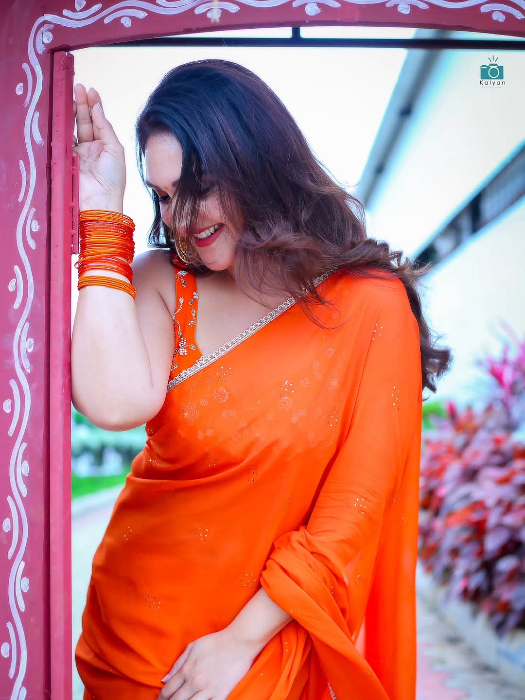 ಕೇಸರಿ ಬಣ್ಣದ ಸೀರೆಯಲ್ಲಿ ನಟಿ ಶ್ರೀದೇವಿ ವಿಜಯ್ಕುಮಾರ್ ಕಂಗೊಳಿಸಿದ್ದಾರೆ.