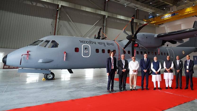 ಗುಜರಾತ್ನ ವಡೋದರಾದಲ್ಲಿರುವ ಟಾಟಾ ಏರ್ಕ್ರಾಫ್ಟ್ ಕಾಂಪ್ಲೆಕ್ಸ್ನಲ್ಲಿ ಸಿ–295 ವಿಮಾನದೊಂದಿಗೆ ಪ್ರಧಾನಿ ನರೇಂದ್ರ ಮೋದಿ, ಸ್ಪೇನ್ ಪ್ರಧಾನಿ ಪೆಡ್ರೊ ಸ್ಯಾಂಚೆಜ್, ರಕ್ಷಣಾ ಸಚಿವ ರಾಜನಾಥ ಸಿಂಗ್, ಗುಜರಾತ್ ಮುಖ್ಯಮಂತ್ರಿ ಭುಪೇಂದ್ರ ಪಟೇಲ್, ಟಾಟಾ ಸನ್ಸ್ ಅಧ್ಯಕ್ಷ ನಟರಾಜನ್ ಚಂದ್ರಶೇಖರನ್ ಪಾಲ್ಗೊಂಡಿದ್ದರು.