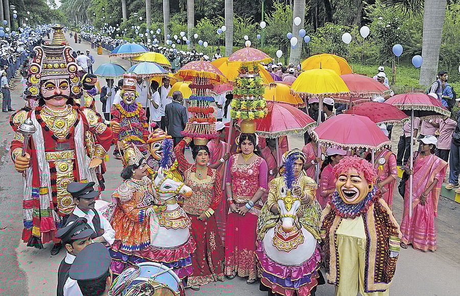 ‘ವಿಶ್ವ ಮಕ್ಕಳ ಹಕ್ಕುಗಳ ದಿನ’ದ ಅಂಗವಾಗಿ ರಾಜ್ಯ ಮಕ್ಕಳ ಹಕ್ಕುಗಳ ರಕ್ಷಣಾ ಆಯೋಗ, ನಗರದ ಕಬ್ಬನ್ ಉದ್ಯಾನದಲ್ಲಿ ಶುಕ್ರವಾರ ಆಯೋಜಿಸಿದ್ದ ಕಾರ್ಯಕ್ರಮದಲ್ಲಿ ಭಾಗವಹಿಸಿದ್ದ ವಿದ್ಯಾರ್ಥಿಗಳು ರಸ್ತೆಯ ಎರಡೂ ಬದಿಗಳಲ್ಲಿ ನಿಂತ ದೃಶ್ಯ ಕಂಡುಬಂತು. ಇದೇ ವೇಳೆ ಕಲಾವಿದರು ವಿವಿಧ ವೇಷಗಳನ್ನು ಧರಿಸಿ ಮಕ್ಕಳನ್ನು ರಂಜಿಸಿದರು ಪ್ರಜಾವಾಣಿ ಚಿತ್ರ
