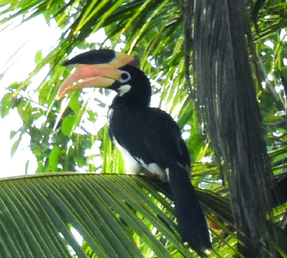 ಉತ್ತರ ಕನ್ನಡ ಜಿಲ್ಲೆಯ ಕಾರವಾರ ಕಾಜುಭಾಗದಲ್ಲಿ ತೆಂಗಿನ ಮರದ ಮೇಲೆ ಕುಳಿತ ಅಪರೂಪದ ಮಲಬಾರ್ ಪೈಡ್ ಹಾರ್ನ್ ಬಿಲ್ (ಮಂಗಟ್ಟೆ ಹಕ್ಕಿ). ಹೆಚ್ಚಾಗಿ ಪಶ್ಚಿಮ ಘಟ್ಟದ ಕಾಡುಗಳಲ್ಲಿ ಕಂಡುಬರುವ ಹಕ್ಕಿಗೆ ರಣ ಹದ್ದಿನ ಗಾತ್ರದ ಅಗಾಧವಾದ ಕೊಕ್ಕಿನ ಮೇಲೆ ಖಡ್ಗ ಮೃಗಕ್ಕಿರುವಂತೆ ಕೊಂಬು ಇರುತ್ತದೆ. ಇದಕ್ಕೆ ಕುತ್ತಿಗೆ ಹಾಗೂ ಎದೆಯ ಮೇಲೆ ಬಿಳಿ ಪಟ್ಟಿಗಳಿರುತ್ತವೆ. ಪರಿಸರ ಹಾನಿ, ಹಣ್ಣಿನ ಮರಗಳ ಕೊರತೆ ಹಾಗೂ ಶಿಕಾರಿಗಳ ದೆಸೆಯಿಂದ ಈ ದೊಡ್ಡ ಮಂಗಟ್ಟೆ ಹಕ್ಕಿಗಳು ವಿನಾಶದ ಅಂಚಿನಲ್ಲಿವೆ - ಚಿತ್ರ: ದಿಲೀಪ್‌ ರೇವಣಕರ್‌