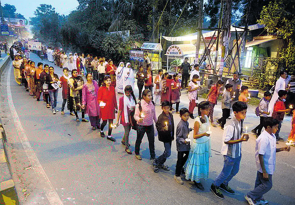 ಅಲಹಾಬಾದ್‌ನಲ್ಲಿ ಭಾನುವಾರ ‘ದಿ ಫೀಸ್ಟ್‌ ಆಫ್‌ ಕ್ರೈಸ್ಟ್‌ ದಿ ಕಿಂಗ್‌’ ಧಾರ್ಮಿಕ ಆಚರಣೆ ಅಂಗವಾಗಿ ಕ್ಯಾಥೊಲಿಕ್‌ ಕ್ರೈಸ್ತರು ಮೆರವಣಿಗೆ ನಡೆಸಿದರು -ಎಎಫ್‌ಪಿ ಚಿತ್ರ